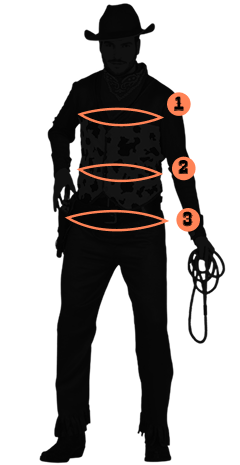 XL: (1) Pit 108-115 cm, (2) Cintura 90-100 cm, (3) Caderes 110-125 cm